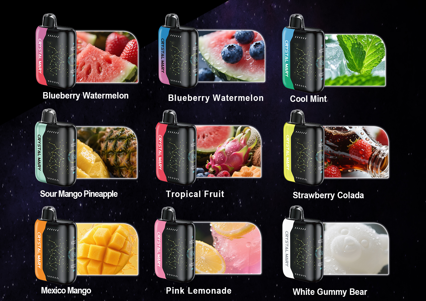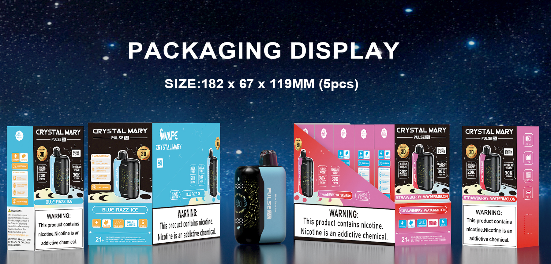 Experience vaping like never before with the CRYSTAL MARY PULSE X. Featuring a vibrant 3D screen, stay informed and in control.